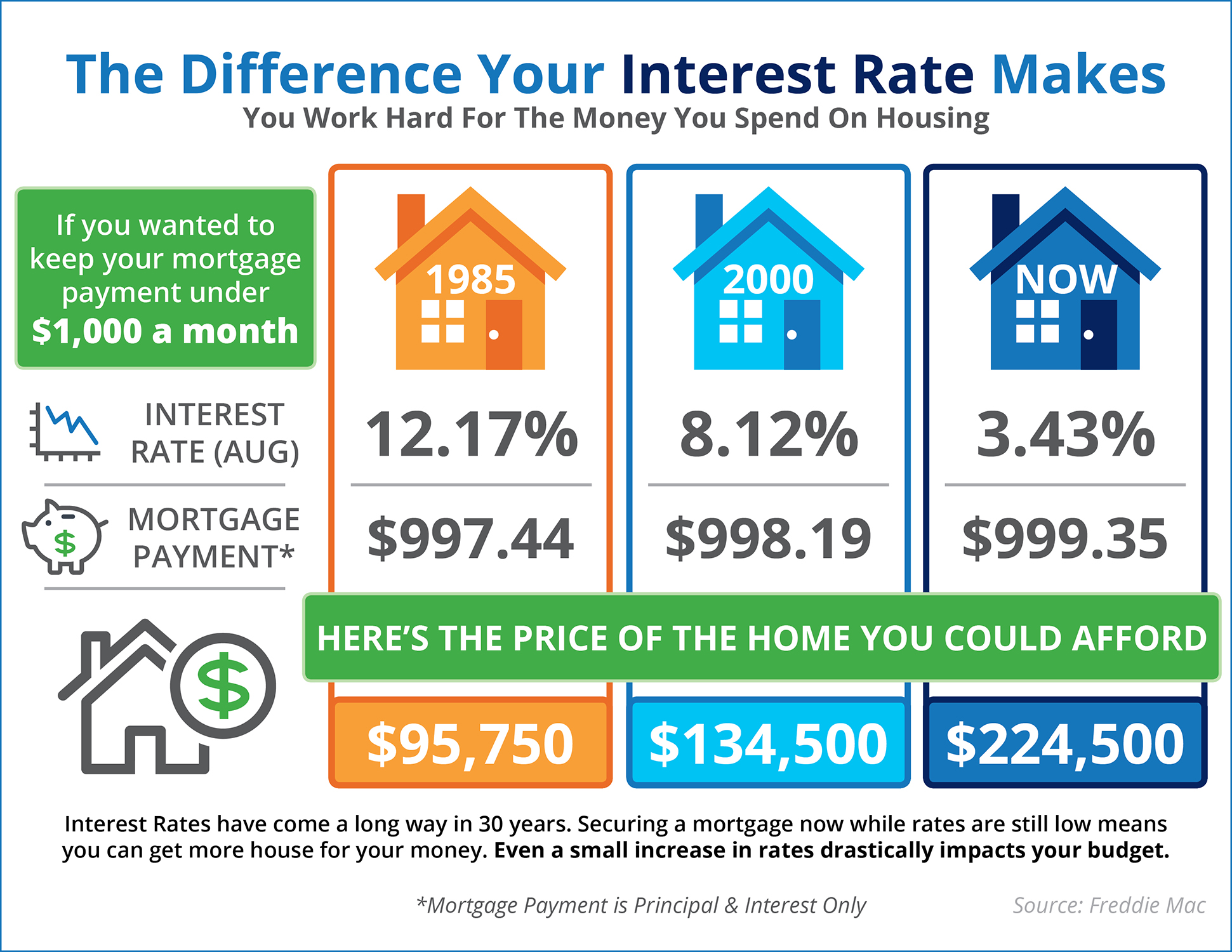 Some Highlights:Interest rates have come a long way in the last 30 years.The interest rate you secure directly impacts your monthly payment and the amount of house that you can afford if you plan to [...]